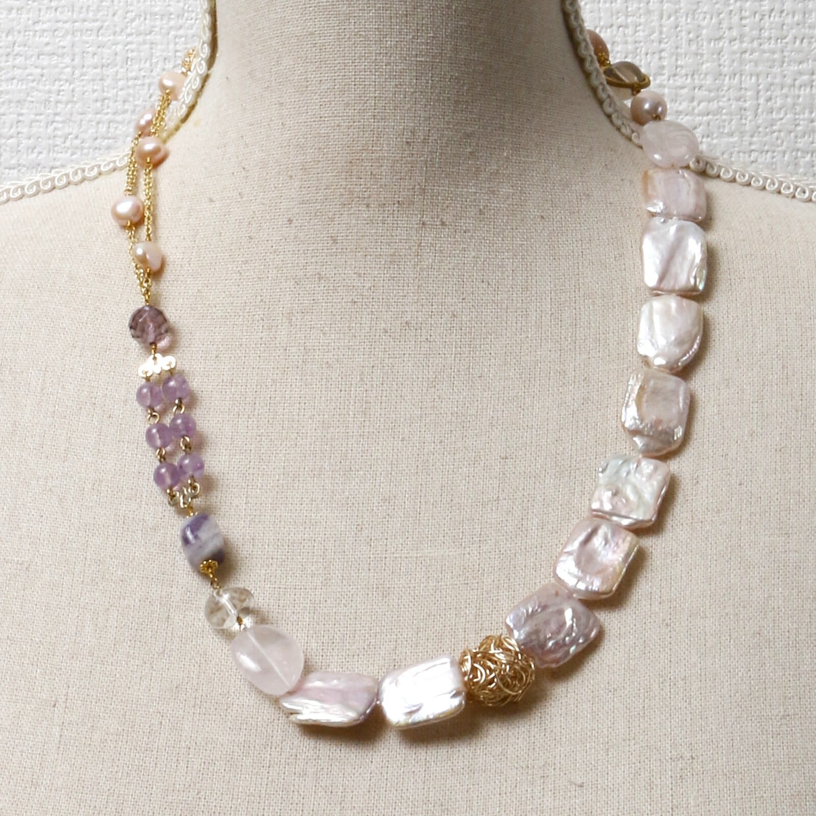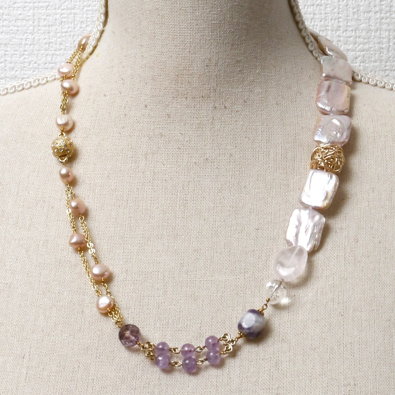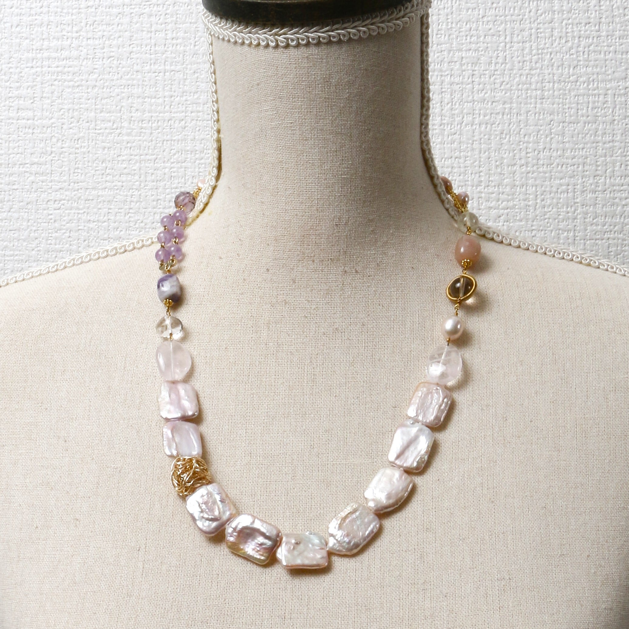 淡水パール、アメジスト、オレンジムーンストーン、ローズクオーツ、水晶、スモーキークォーツ、シトリン、