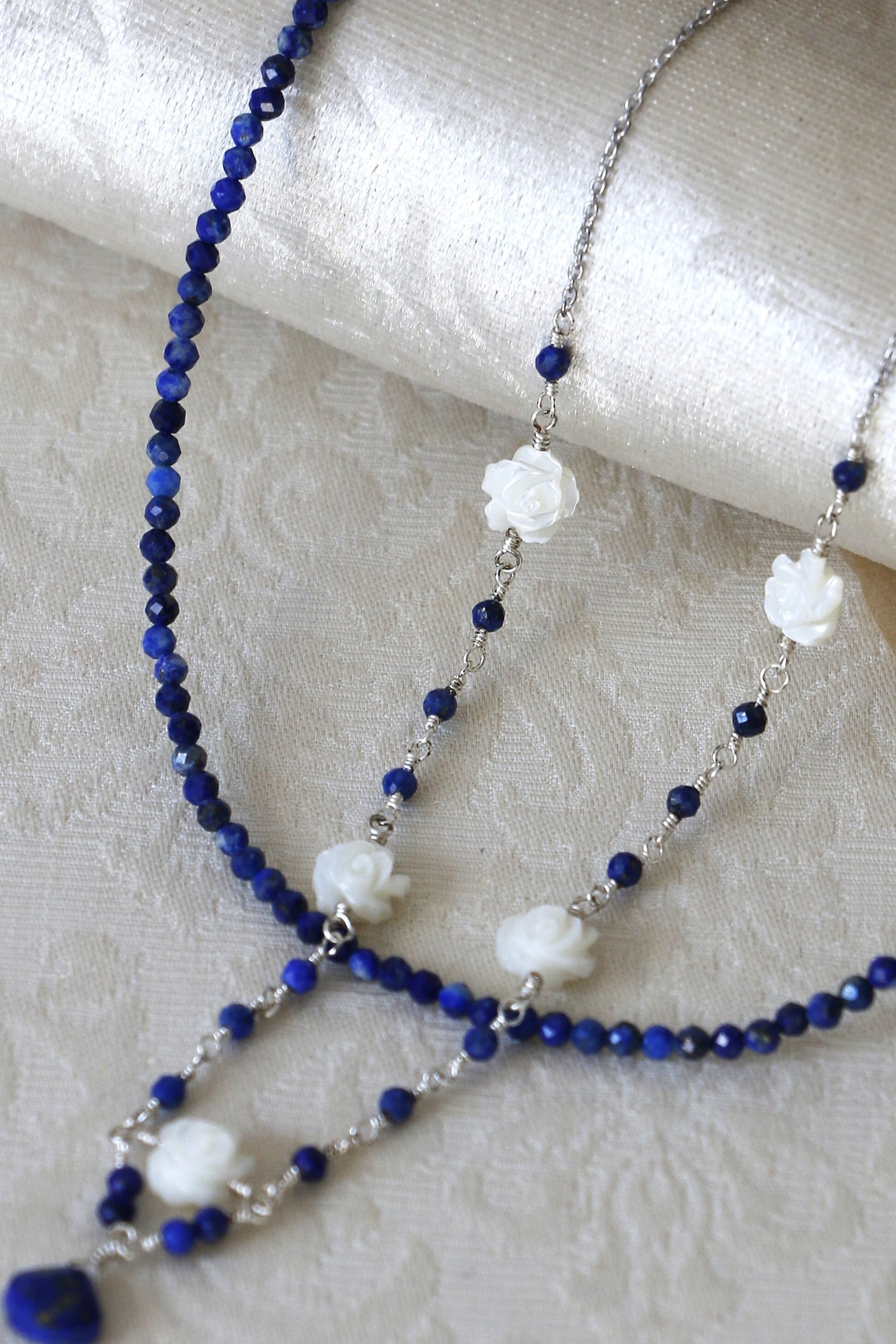 天然石のジュエリー heidenröslein ~野ばらシリーズ~ ラピスラズリとシェルのネックレス