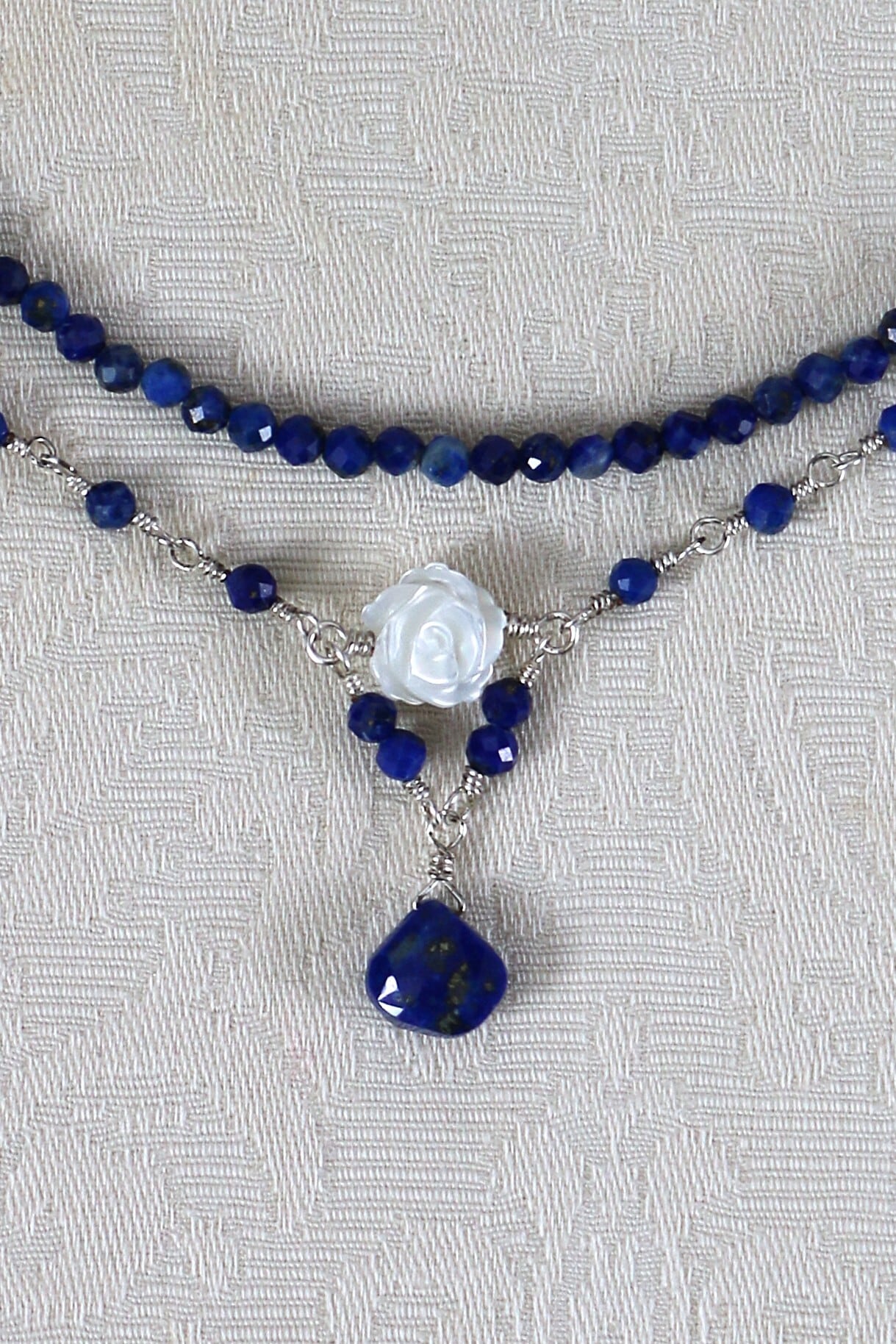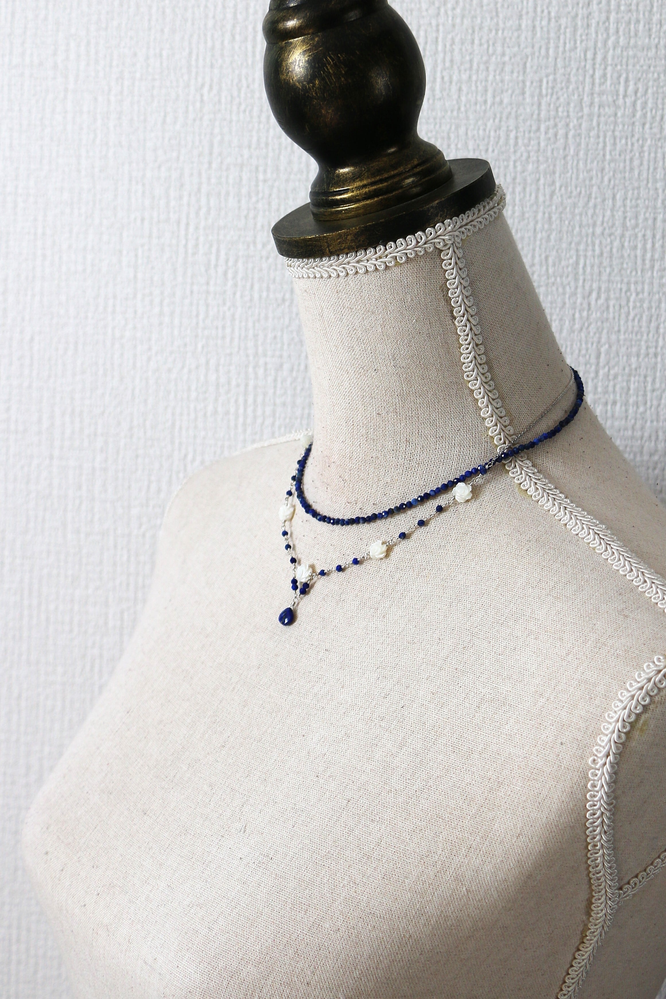 ラピスラズリの深く澄んだ青と、ホワイトシェルのやわらかな輝き。