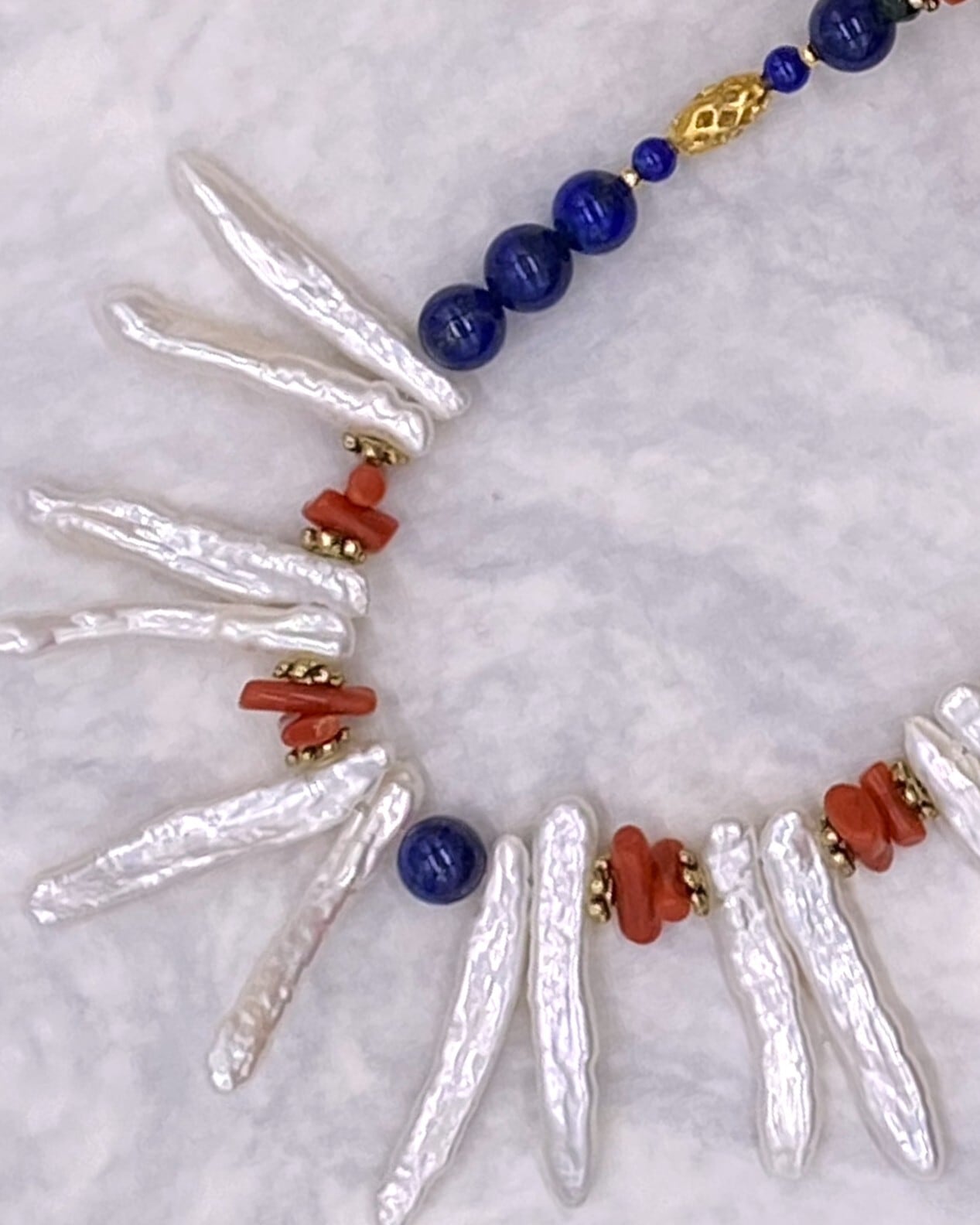 (ラピス、サルディニアサンゴ、エメラルド、パール)